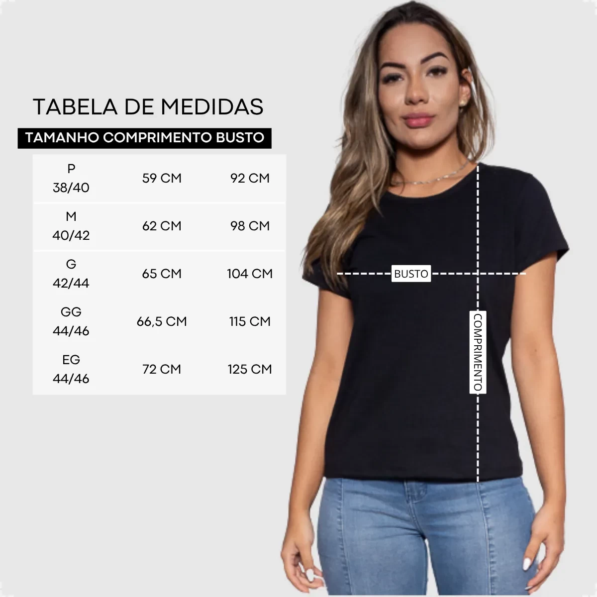 • Tamanhos disponíveis: P, M, G, GG, G1 (ou sob consulta)