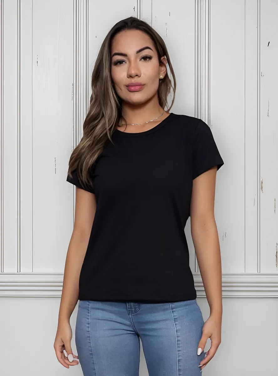 Camiseta Feminina Preta Babylook 100% Algodão – Personalizada e Confortável