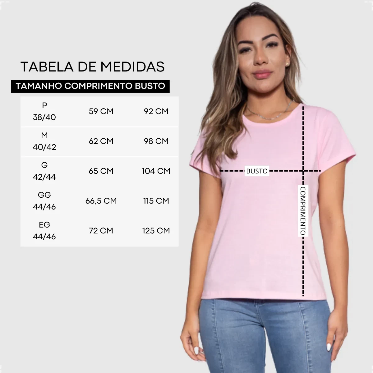 • Tamanhos disponíveis: P, M, G, GG, G1 (ou sob consulta)