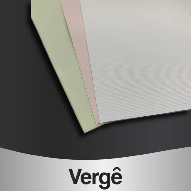 O papel Vergê possui textura levemente marcada e toque diferenciado, proporcionando um aspecto mais nobre à sua arte impressa.