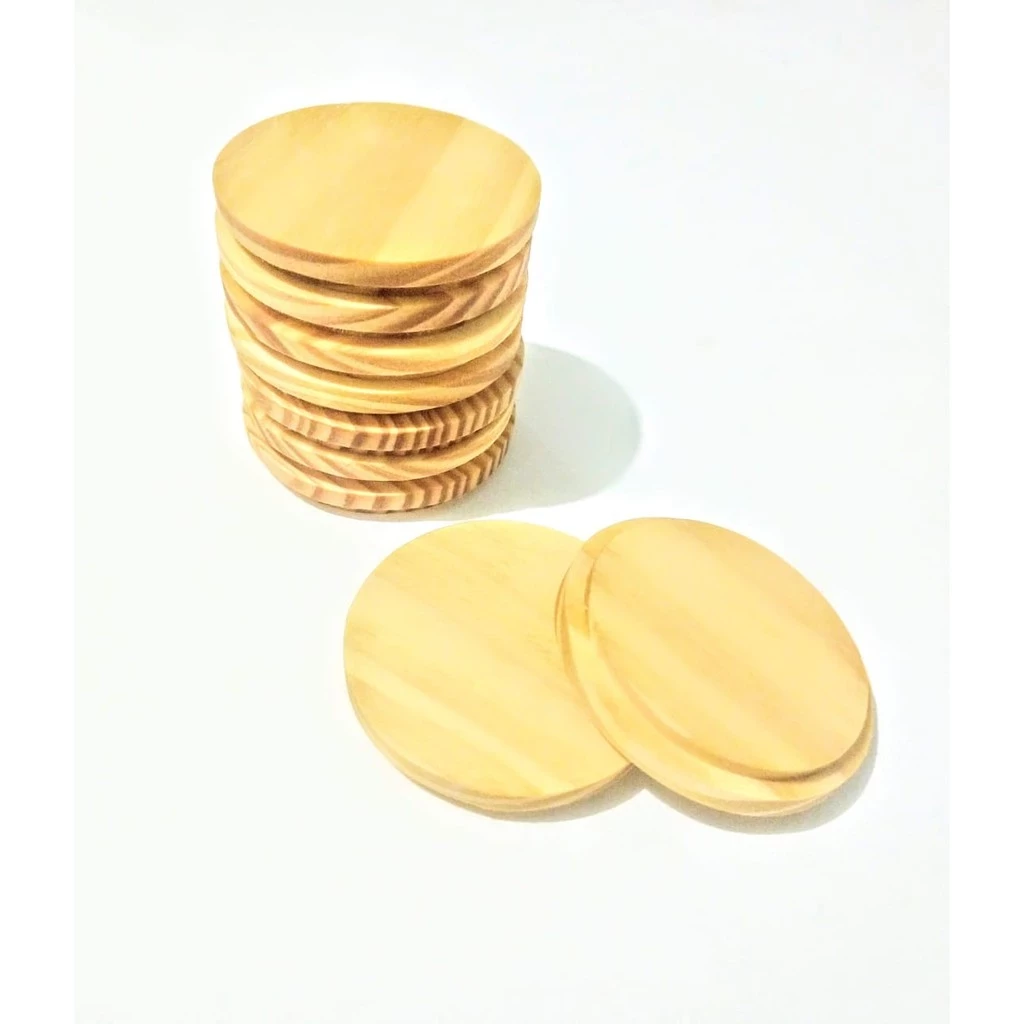 Tampas de Madeira de Pinus para Canecas – 8x7,2x2 cm