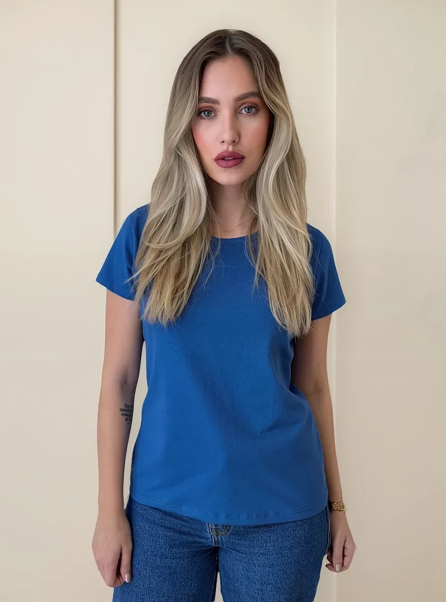 Camiseta Feminina Azul Babylook 100% Algodão – Personalizada e Confortável