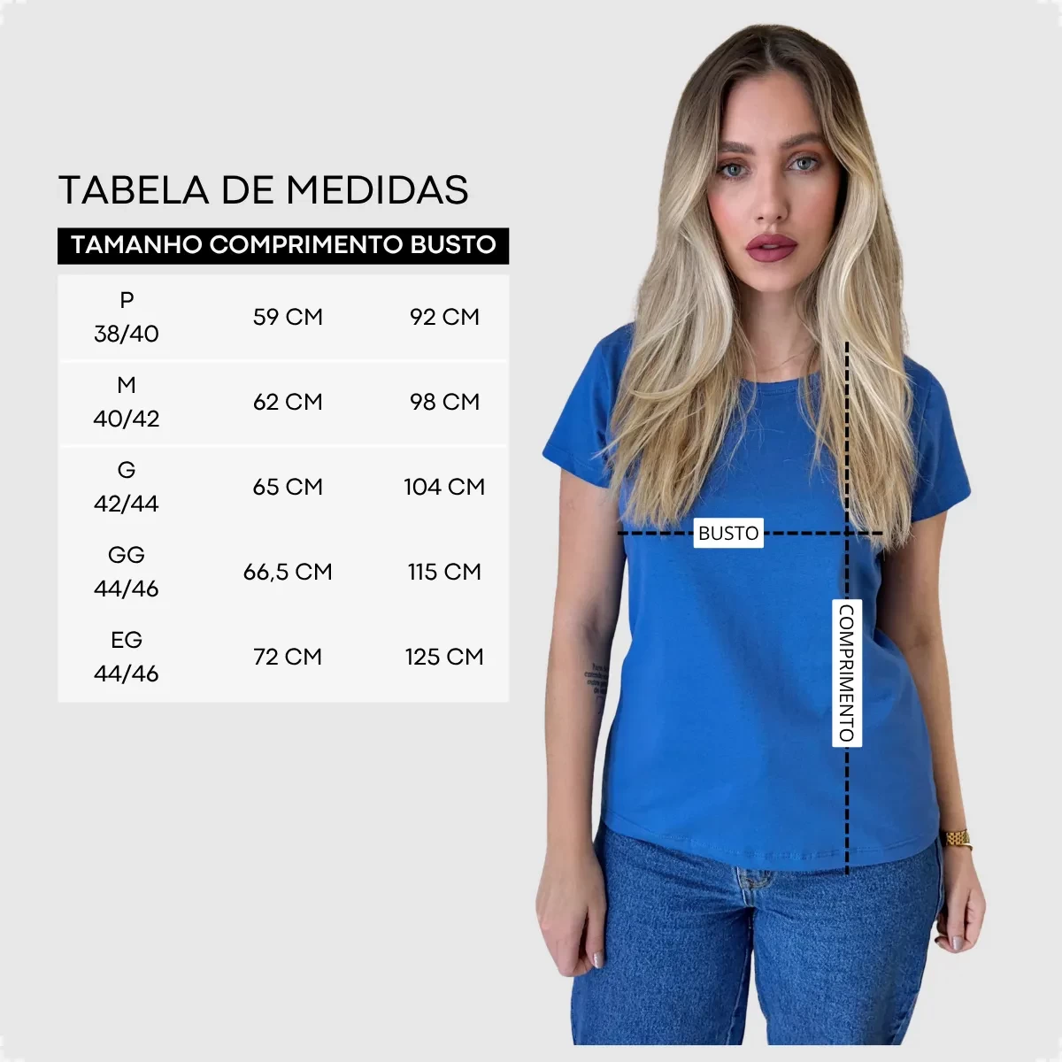• Tamanhos disponíveis: P, M, G, GG, G1 (ou sob consulta)