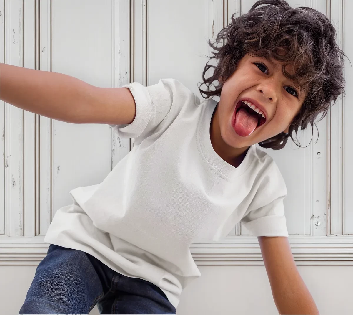 A camiseta básica infantil unissex personalizada é feita em algodão comfort, com toque macio e caimento leve — perfeita para o dia a dia, escola, festas ou como lembrança de eventos.